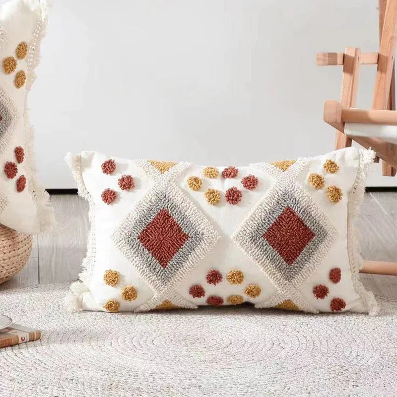 Enhance the look of your space with the Afralia™ Boho Ivory Brown Tufted Lace Pillow Cover, a true embodiment of style and sophistication. Elevate your decor with this exquisite pillow cover and transform your space into a cozy and stylish sanctuary.