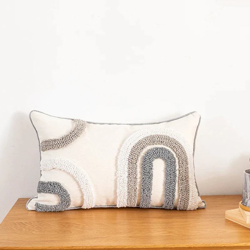 Afralia™ Boho Style Grey Abstract Cushion Cover for Home Decoration