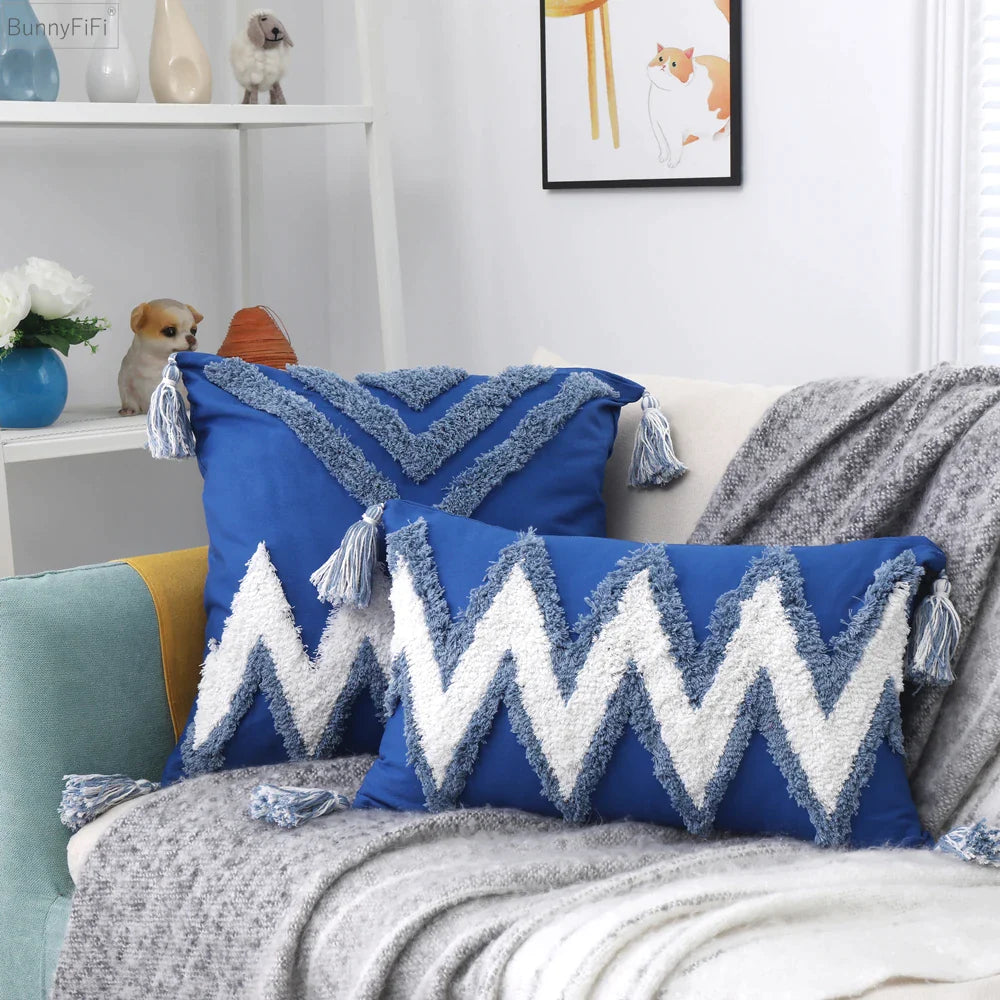 Whether you're looking to wholesale or dropship, this cushion cover is a versatile option that will elevate your product offerings. Add a touch of luxury and style to your home with the Afralia™ Boho Tufted Tassel Cushion Cover in Blue Pink.