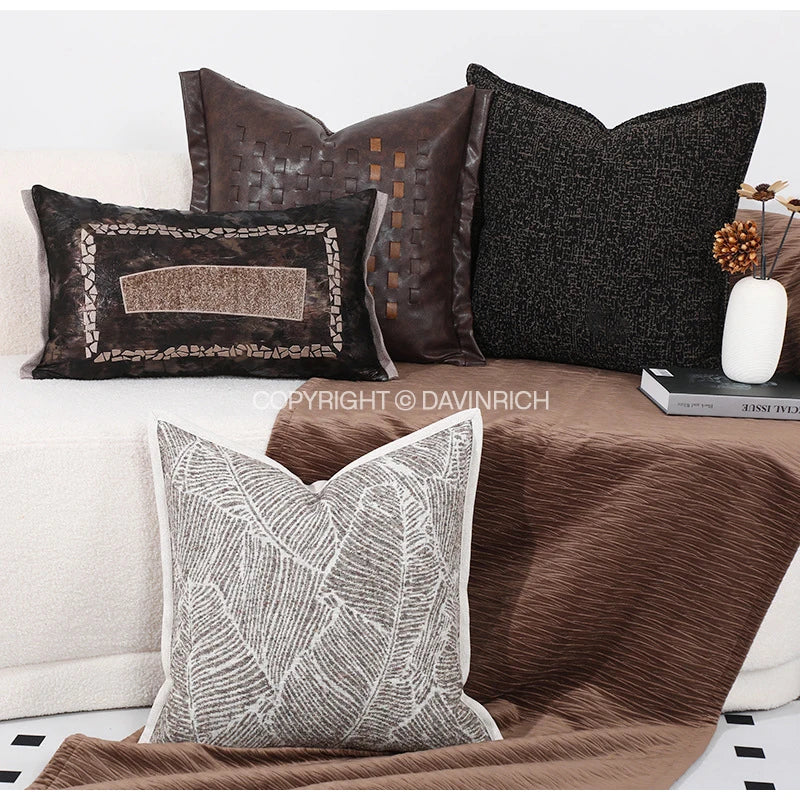 Afralia™ Brighton Cross Stitch Faux Leather Cushion Cover 45x45cm Brown