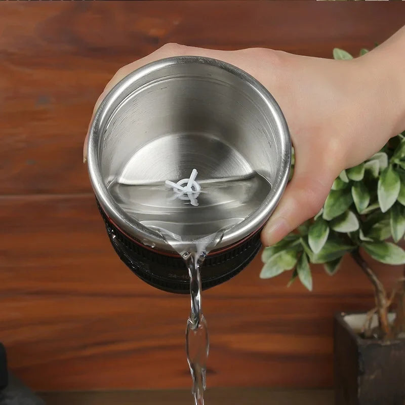 Afralia™ Camera Lens Cup: Electric Self Stirring Coffee Mug, 300ml