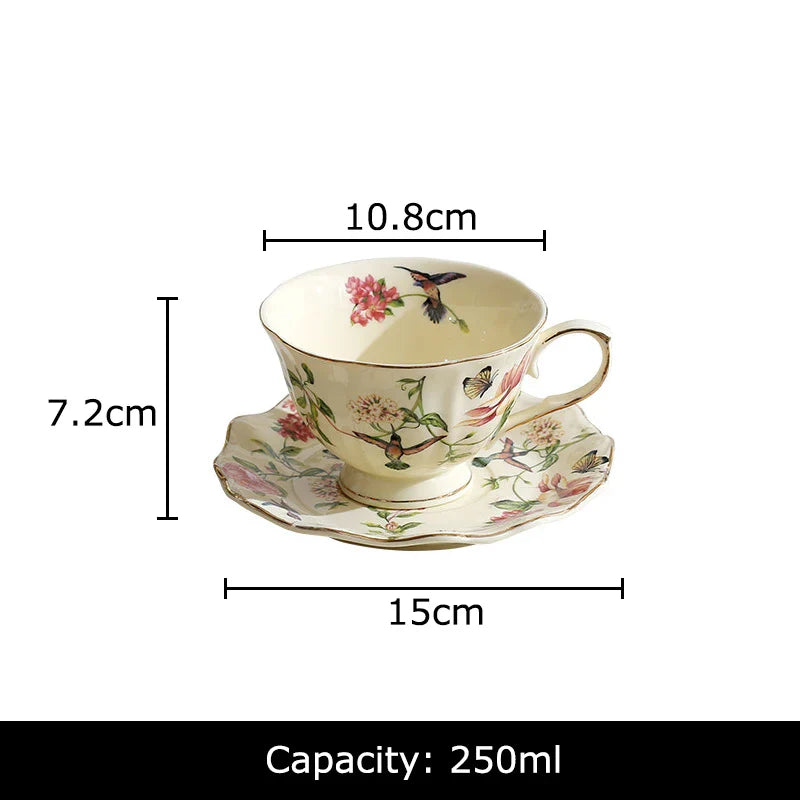Afralia™ Ceramic Floral Bird Cup & Saucer Set for Dining Table and Coffee - 18 Word Limit
