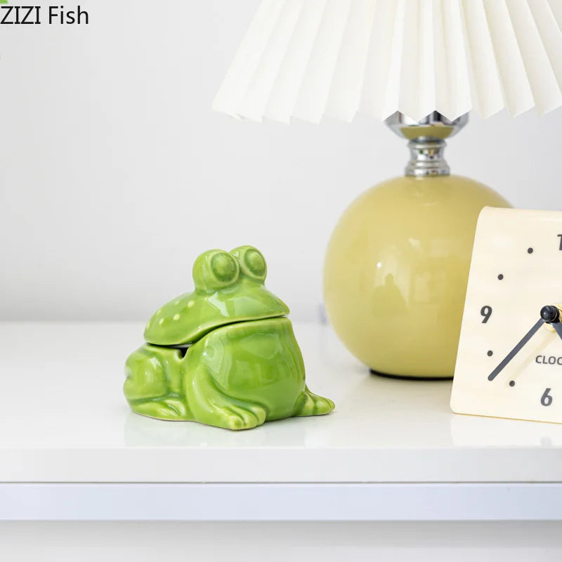 Afralia™ Ceramic Green Frog Ashtray: Cute Desktop Smoking Accessories for Weed Ash, Gift_PAUSE_