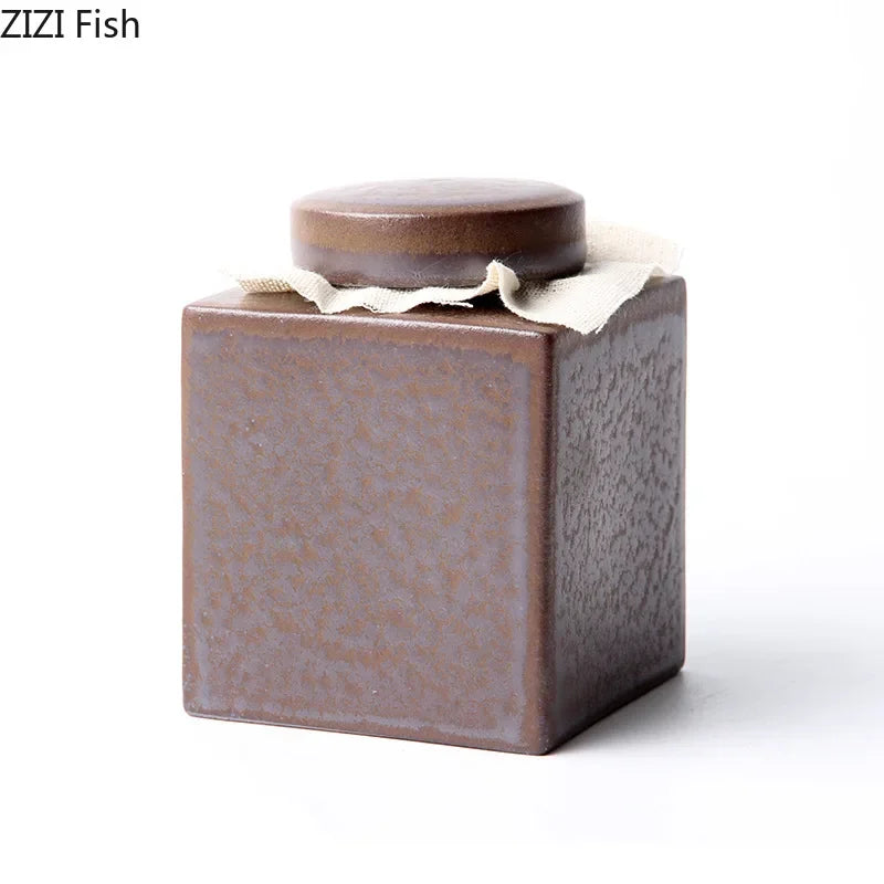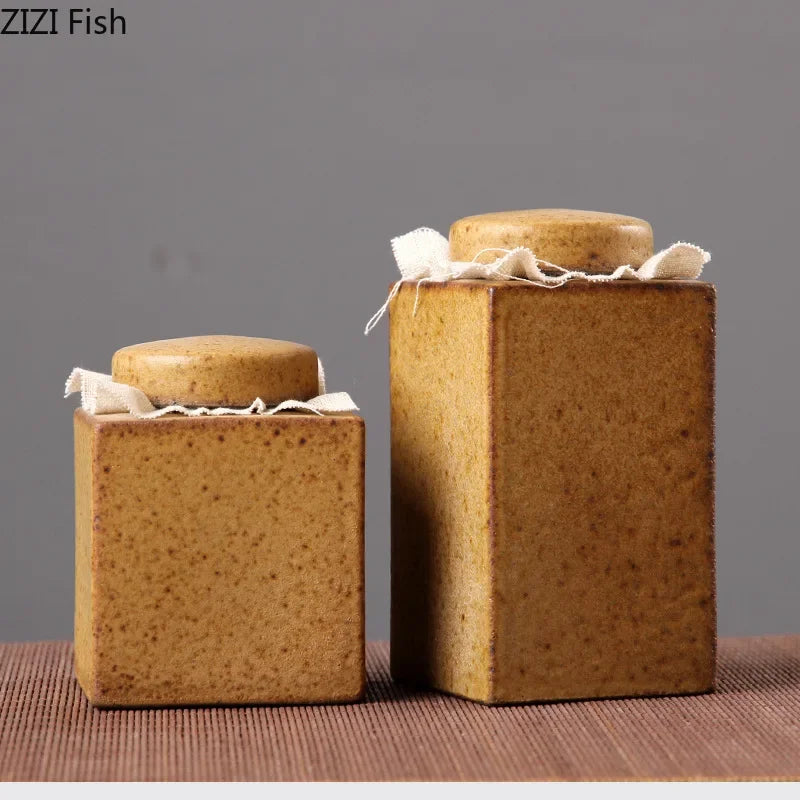Afralia™ Ceramic Tea Canister | Sealed Coffee Table Jar | Rough Pottery Tea Can | Candy Container