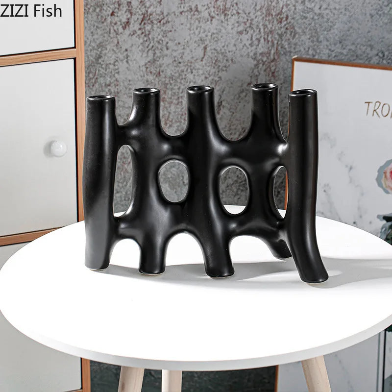 Afralia™ Ceramic Vase with Artificial Flowers | Modern Abstract Floral Living Room Decor