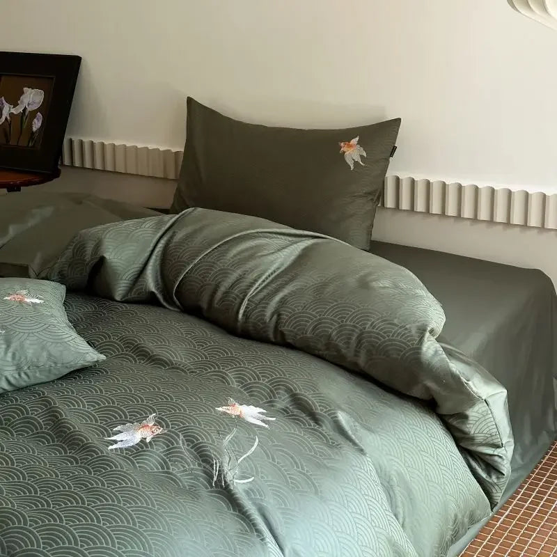 Our duvet cover set includes a duvet cover, two pillowcases, and a flat sheet, all meticulously constructed with a fabric weight of 300gsm for a cozy and premium feel. The intricate embroidered detailing adds a touch of sophistication, elevating the overall look of your bedding ensemble.