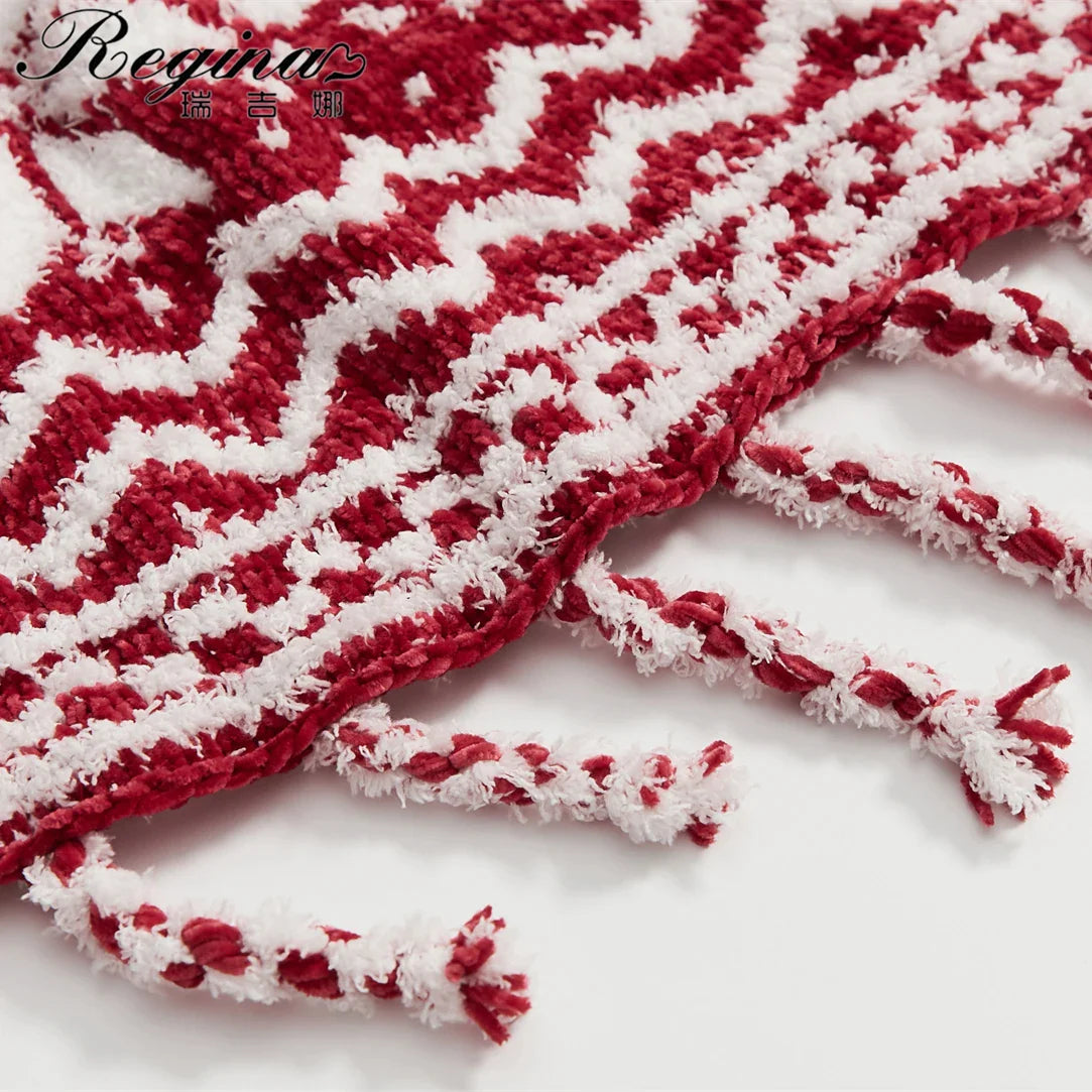 Crafted with care and attention to detail, this Thread Blanket/Towel Blanket features a tufted knitted design with elegant fringes, adding a touch of sophistication to any room. The Wine Beige Plaid color scheme complements any interior decor, making it a versatile and timeless piece.