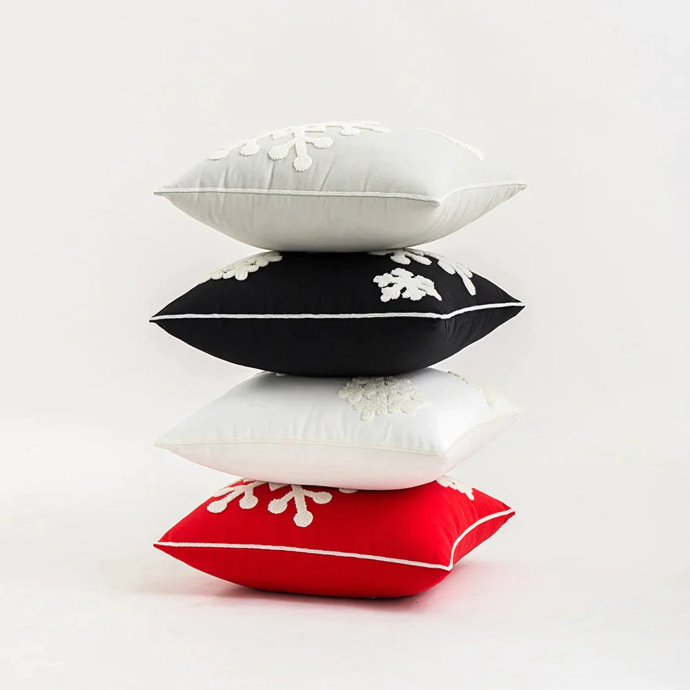 Afralia™ Christmas Snowflake Embroidered Cushion Cover 45x45cm for Home Decor & Noel Party