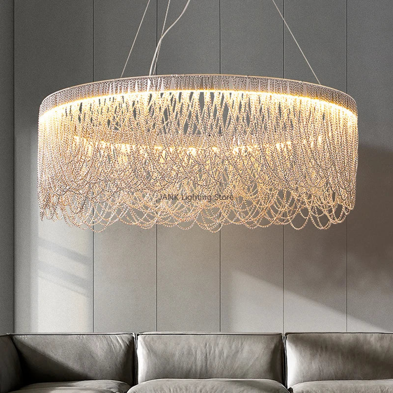 Afralia™ Chrome Tassel Chandelier LED Lighting for Home Living Room Decor
