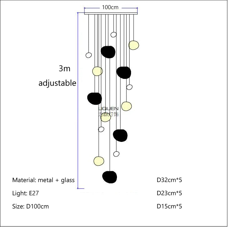 Afralia™ Cobblestone Glass LED Pendant Lights Chandelier for Villa Hotel Loft Stairway
