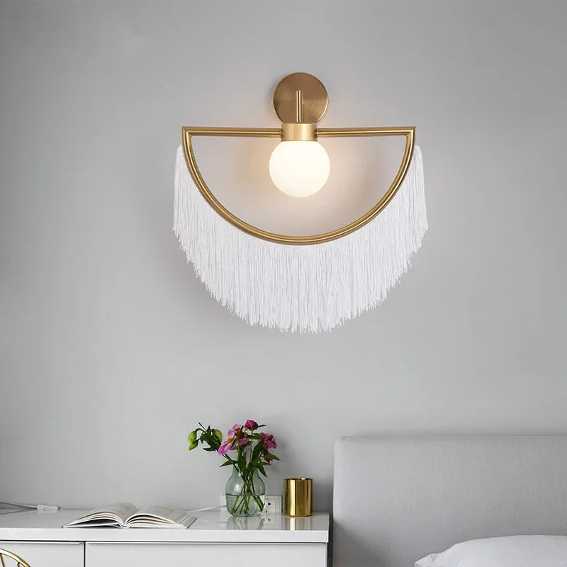Afralia™ Coloured Tassel Glass Ball Pendant Light for Boho Minimalist Style Bedroom & Restaurant