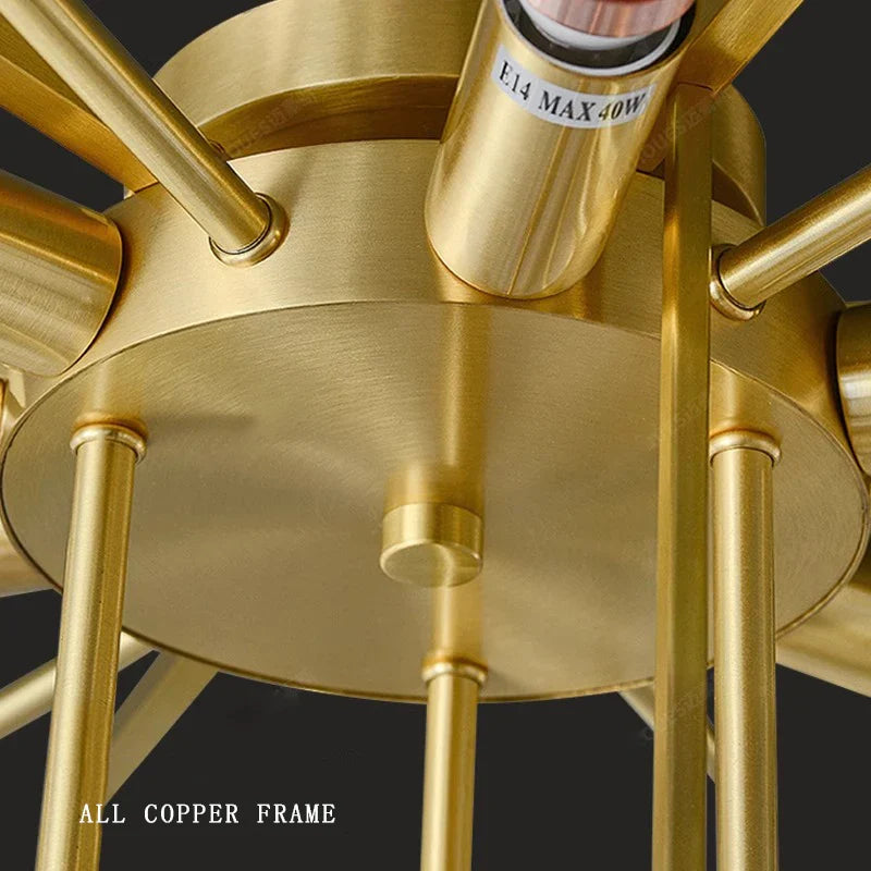 Crafted with high-quality copper and glass materials, this chandelier exudes elegance and sophistication. The brushed gold finish adds a touch of glamour to any room, creating a warm and inviting atmosphere.