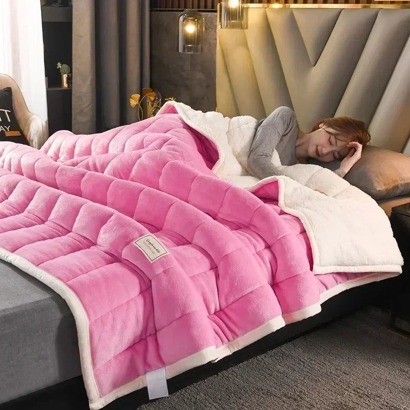 Afralia™ Cozy Flannel Fleece Lambswool Blanket - 3 Layers, Warm & Soft for Bed.