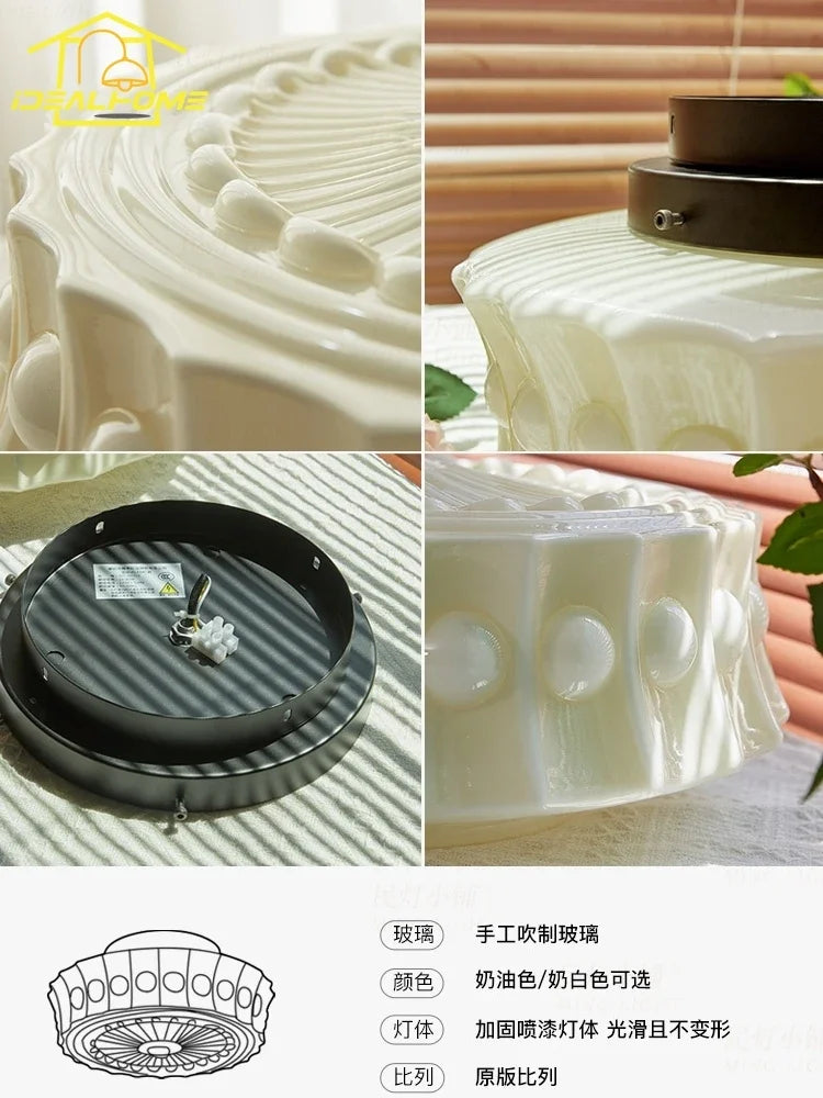 Afralia™ Cream Glass LED Ceiling Light Retro Medieval Style Home Decor