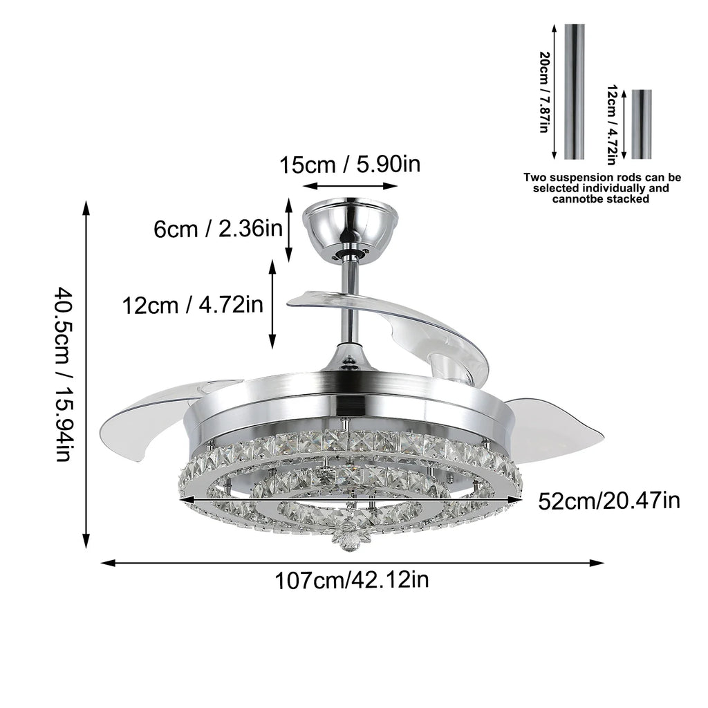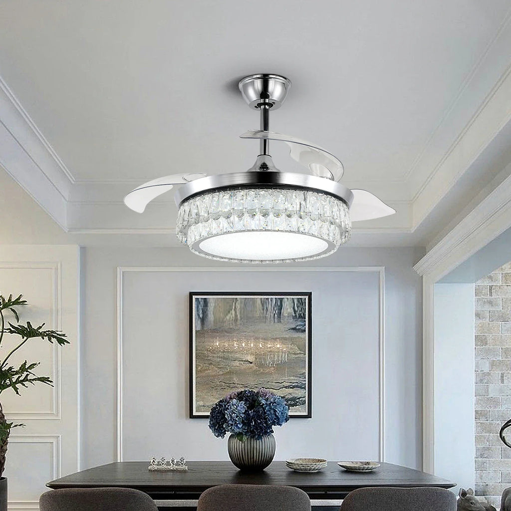 Afralia™ Crystal Fan Chandelier LED Light Retractable Blades Dimmable Remote Modern Home Decor