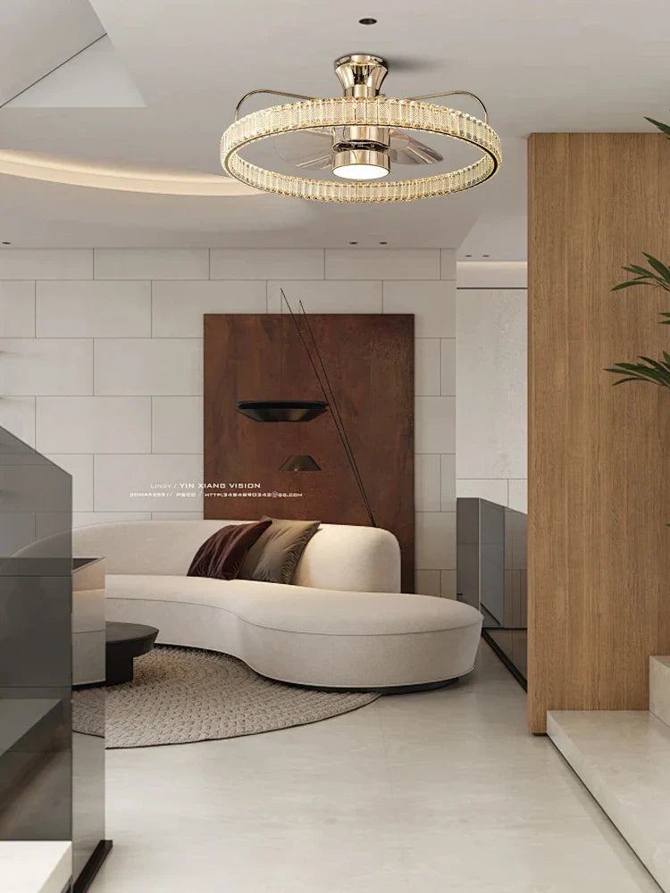 Afralia™ Crystal LED Fan Light: 50W Remote Reversible Blade, Quiet, Timed, Invisible Design