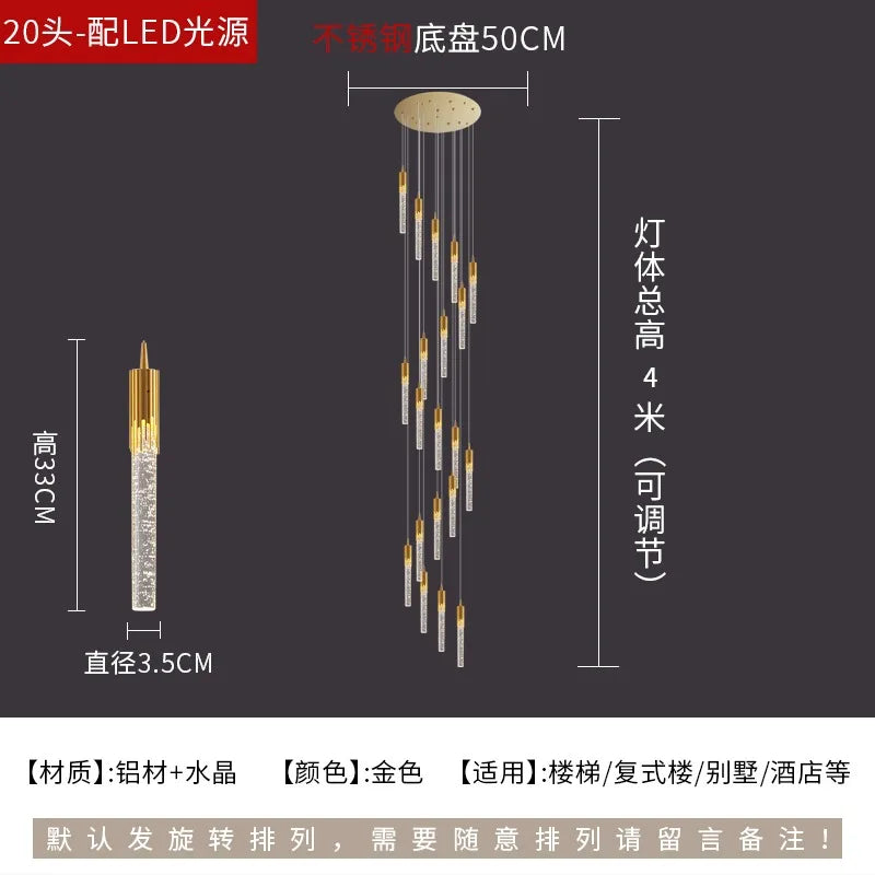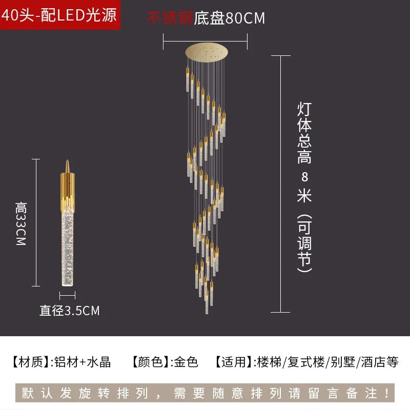 Afralia™ Crystal Rotating Staircase Chandelier: Luxe Duplex Living Room Pendant