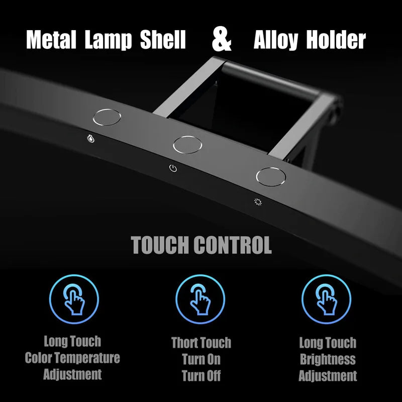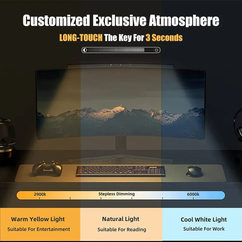 Experience superior illumination with over 20 LED bulbs providing brightness control and color temperature adjustment from 2900K to 6000K. The lamp's curved design complements both curved and straight monitors, creating a harmonious workspace ambiance.