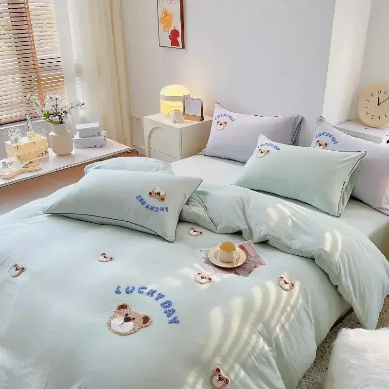Elevate your bedroom with the Afralia™ Cute Bear & Sheep Embroidery Bedding Set, a perfect choice for those who appreciate both style and comfort in their living space. Indulge in the whimsical charm of the bear and sheep embroidery, adding a touch of personality to your room. Experience the joy of a well-made bed with this delightful bedding set.