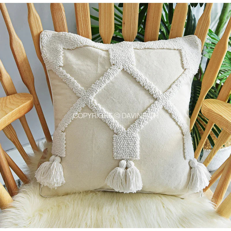 Afralia™ Ethnic Tufted Cushion Case, Pure White Handmade Throw Pillow Cover