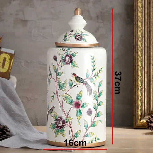 Afralia™ European Flower Bird Ceramic Storage Jar Vase Decoration Tea Coffee Beans Candy Home Decor