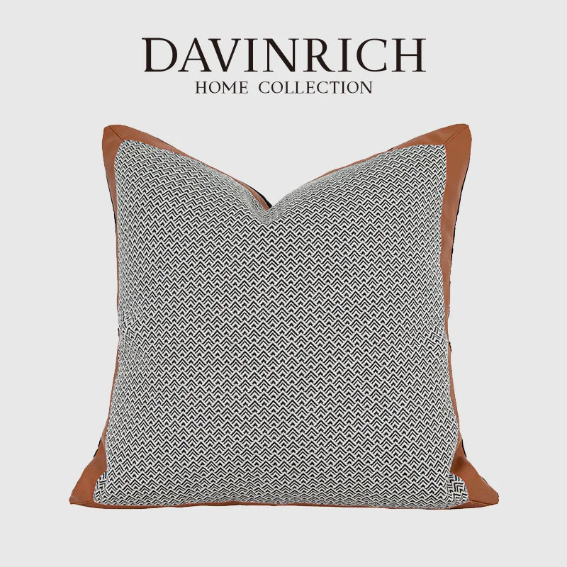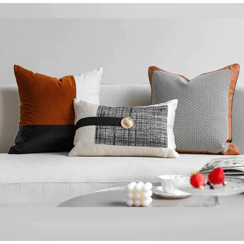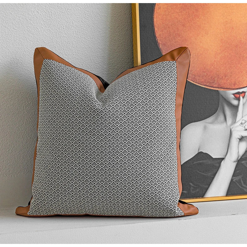 Afralia™ Fish Scale Geometric Jacquard Cushion Covers with Leather Edged Detail