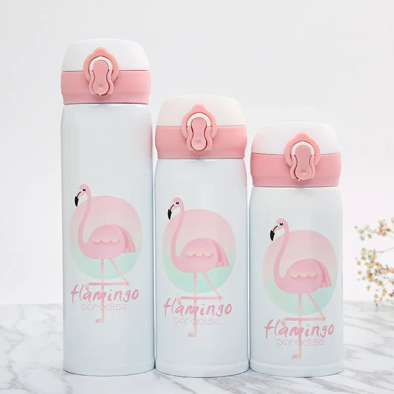 Introducing the Afralia™ Flamingo Pattern Stainless Steel Insulated Vacuum Flask with Bouncing Lid, designed for those who appreciate style and functionality in their everyday essentials.