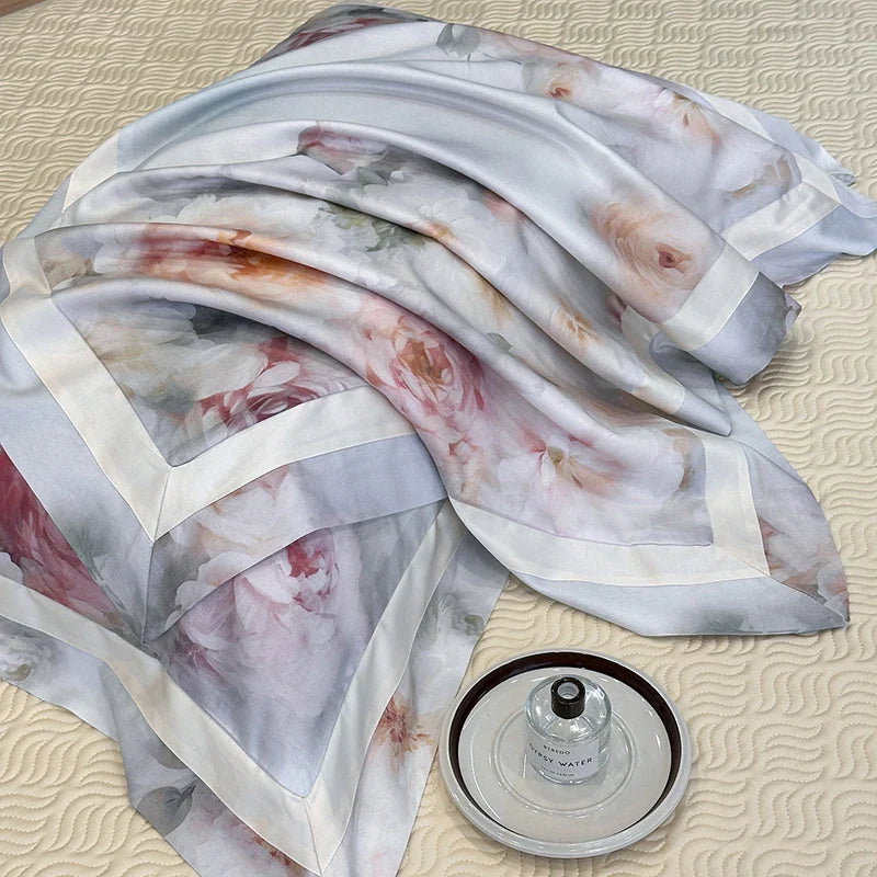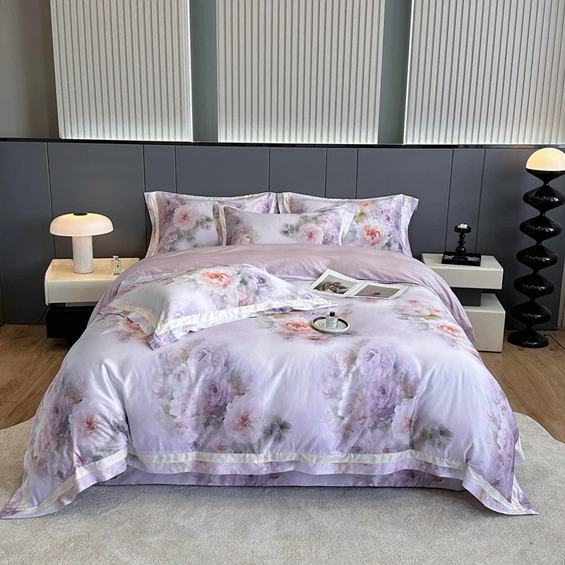Afralia™ Flower Digital Print Duvet Cover Set Soft Silky Cool Bedding