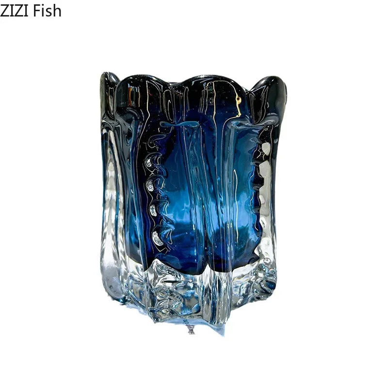 Afralia™ Forest Green Glass Vase Wrinkled Flower Pots Desk Decoration Aesthetic Floral Vases