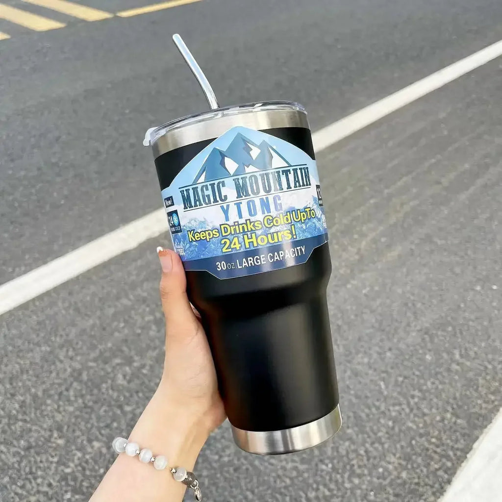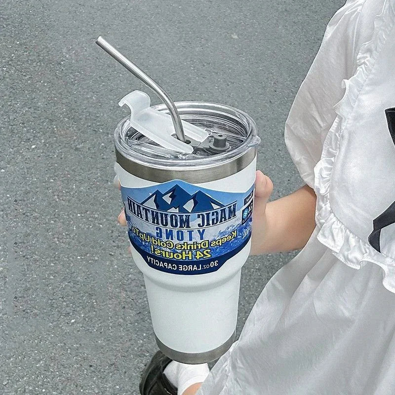 Afralia™ Freeze Thermos Bottle Straw Stainless Steel Tumbler 30oz - Ice Mountain Cup