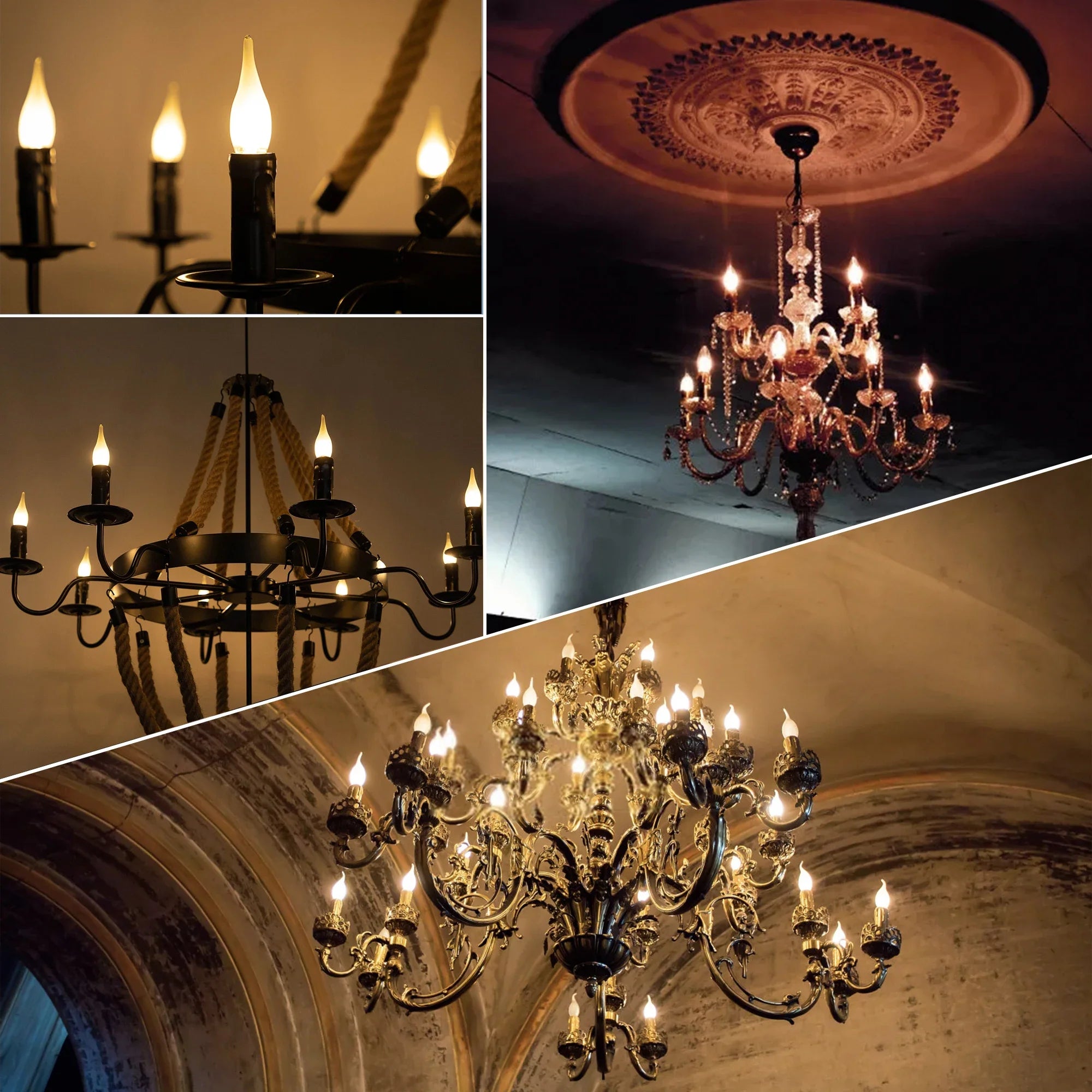 Illuminate your surroundings with a soft and inviting glow, thanks to the warm white 2700K color temperature of these candle flame tip shaped bulbs. With a power of 1.5W, these low wattage bulbs are energy-efficient and cost-effective, making them an ideal choice for ceiling fans, chandeliers, wall lamps, pendant lights, and other indoor lighting fixtures.