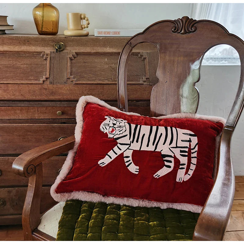 Afralia™ Furry Tiger Embroidery Velvet Cushion Cover 40x55cm: Retro Charm Luxury Home Decor