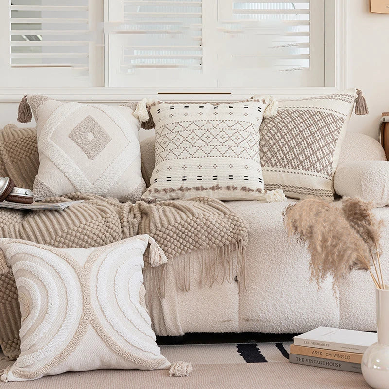 Afralia™ Geometric Semicircle Embroidered Crocheted Throw Pillow Cover for Sofa