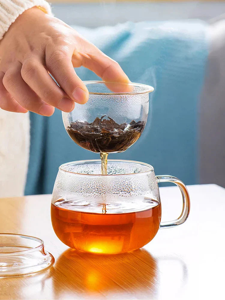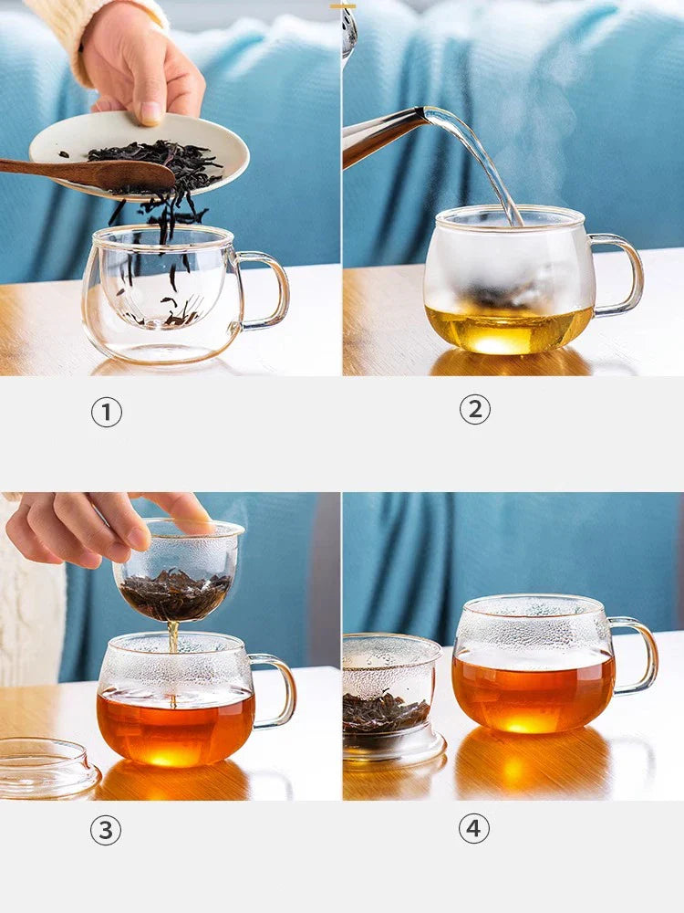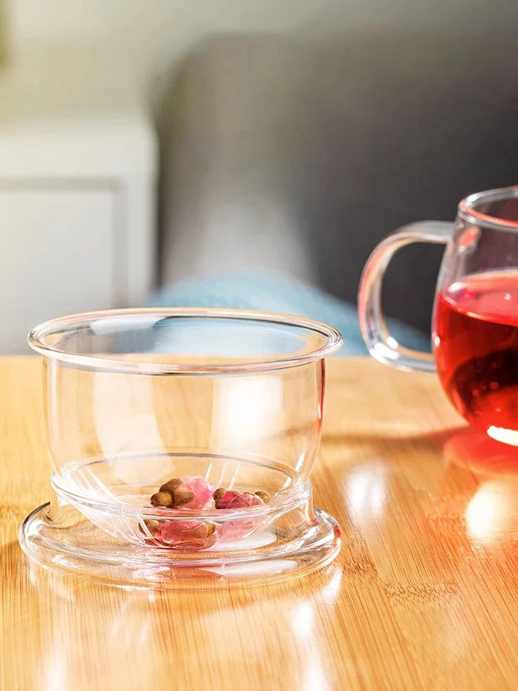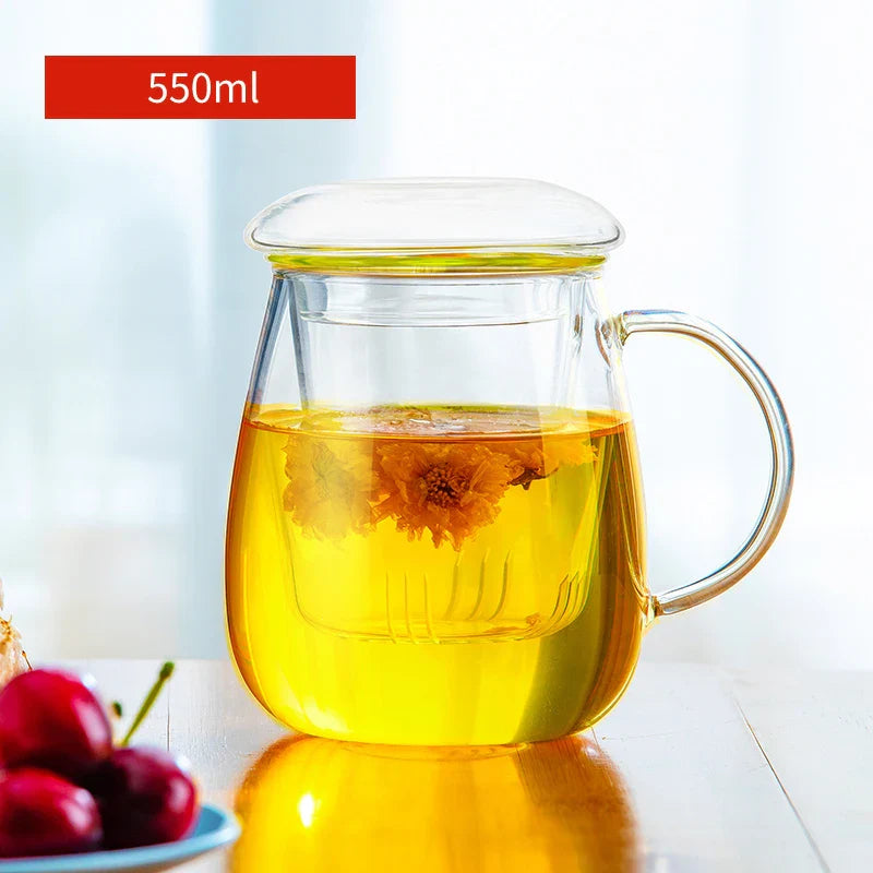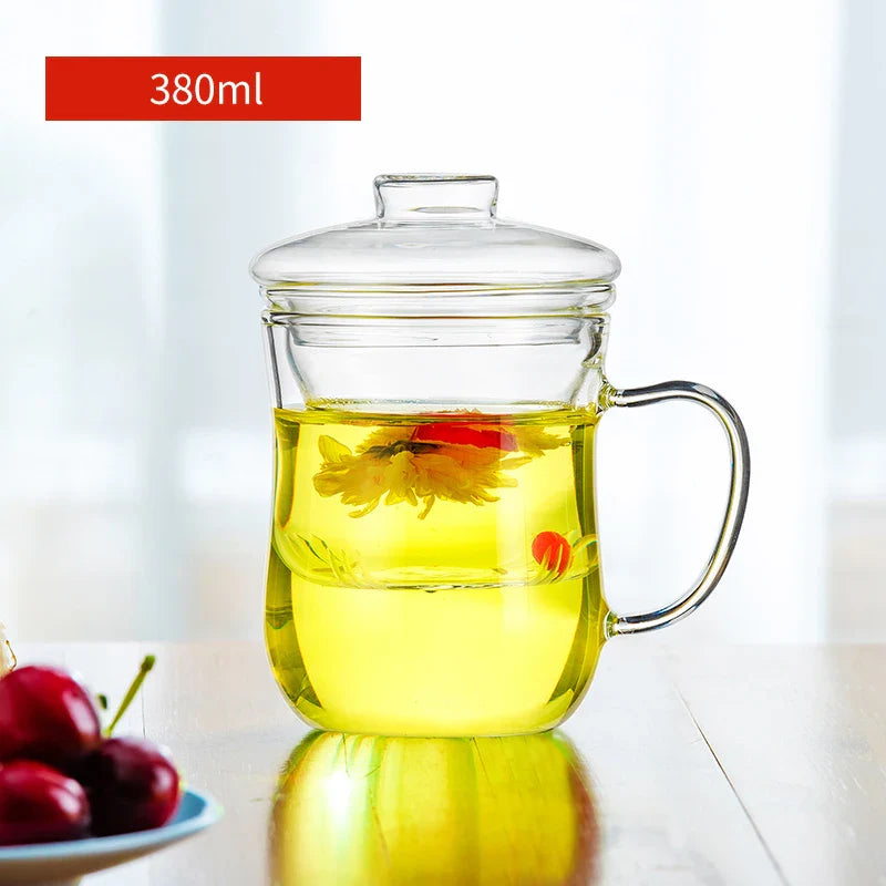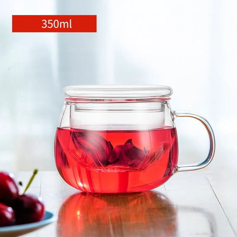 Afralia™ Glass Floral Tea Cup with Handle, Filter & Lid
