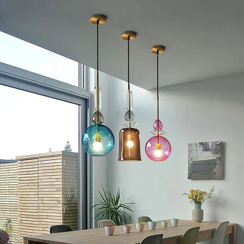 Illuminate your space with style and sophistication with the Afralia™ Glass Pendant Light. Elevate your decor and create a warm and inviting atmosphere with this beautifully crafted lighting fixture. Brighten up your living room and let your personality shine with this colorful and stylish pendant light.