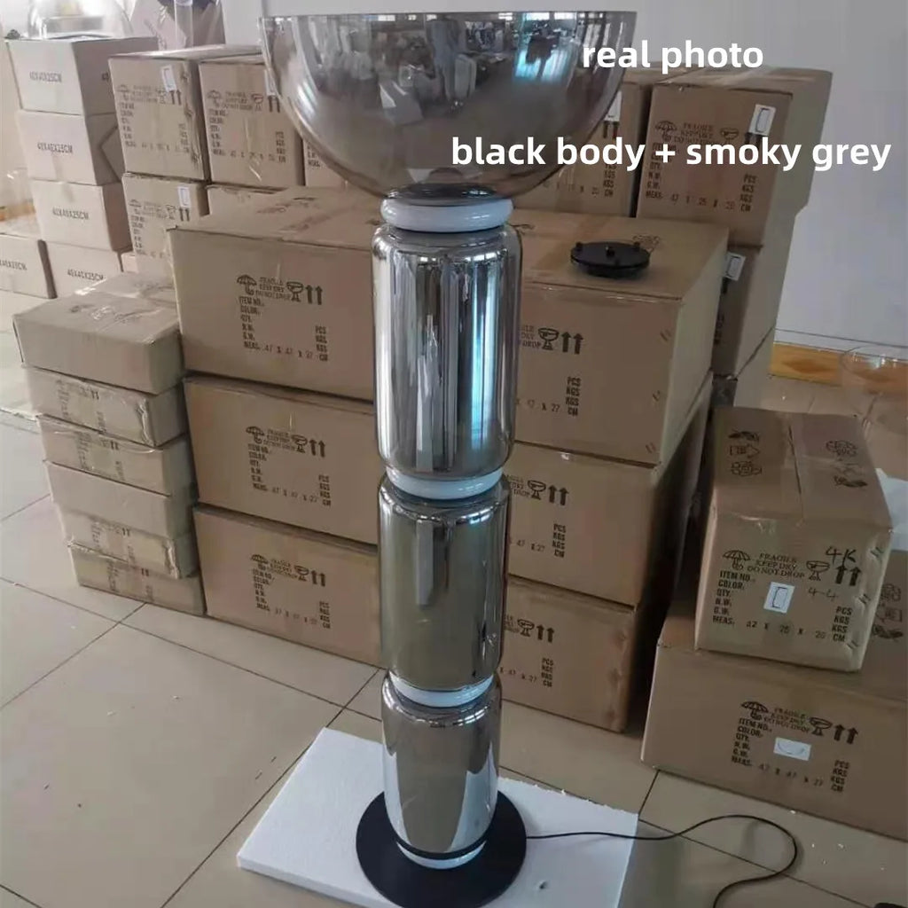 Made with high-quality materials, the body of the lamp features a combination of glass and iron, giving it a sleek and durable finish. The through-carved technics add a touch of artistry to the lamp, making it a striking focal point in any room.