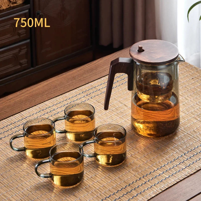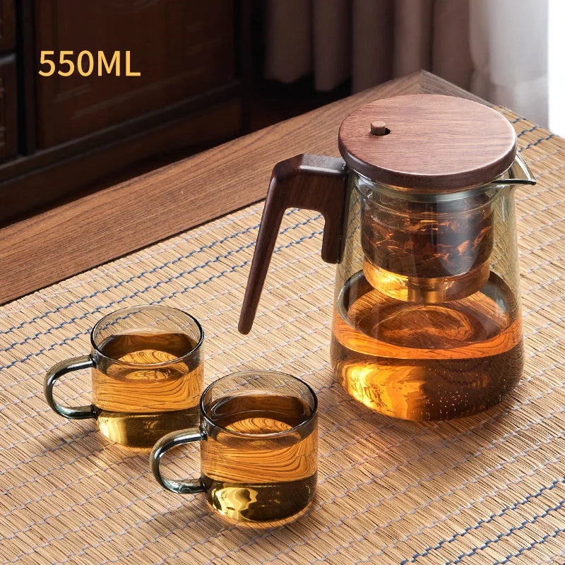 Introducing the Afralia™ Glass Teapot with Wood Handle and One-Button Filtering - Heat Resistant Tea Kettle, a true embodiment of elegance and functionality. Crafted with premium glass material, this teapot exudes a sense of sophistication that will elevate your tea brewing experience.