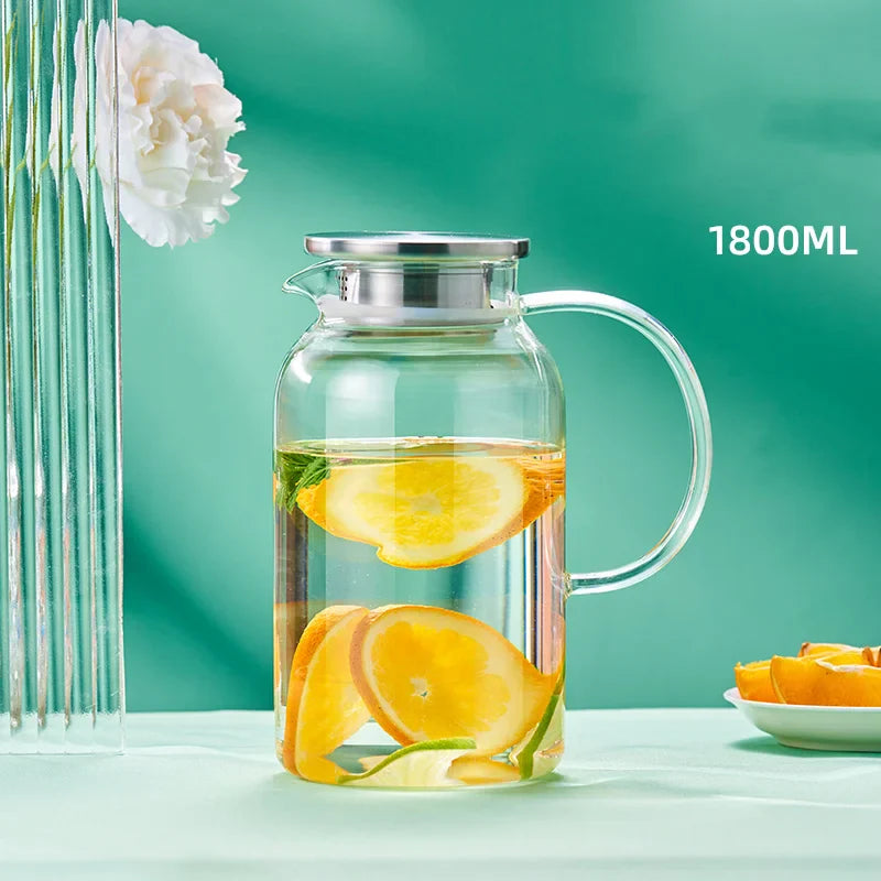 Afralia™ Glass Water Bottle with Stainless Steel Lid, High Capacity Household Kettle