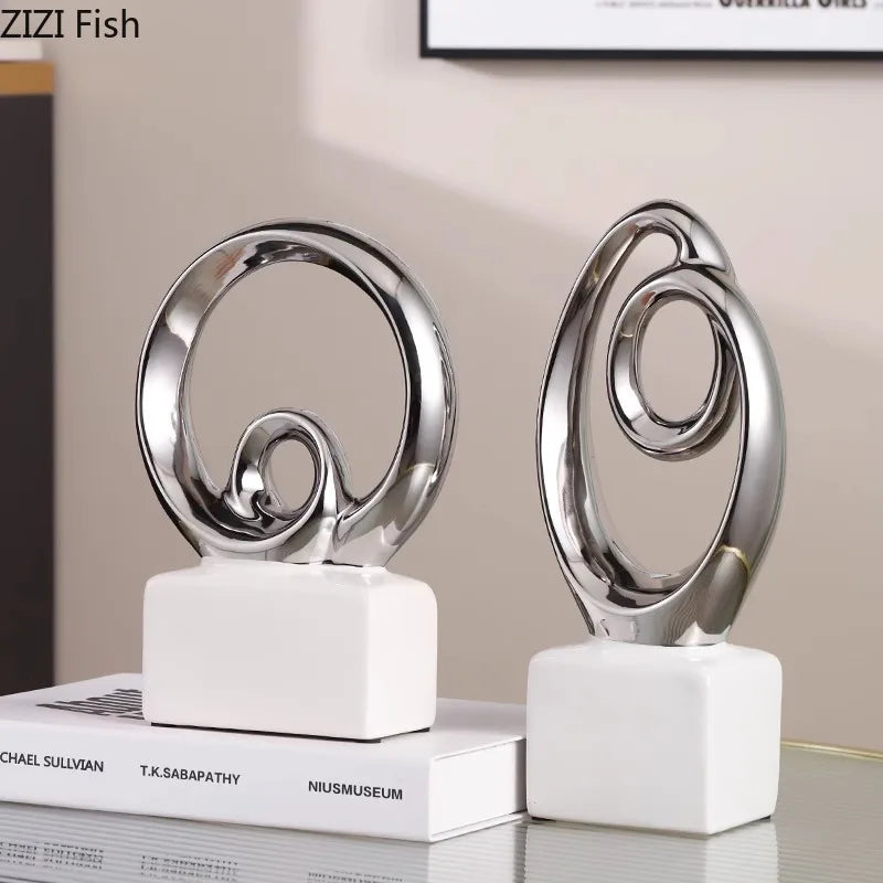 Afralia™ Gold Chain Abstract Ceramic Statue Desk Decoration Ornaments Sculpture Aesthetics