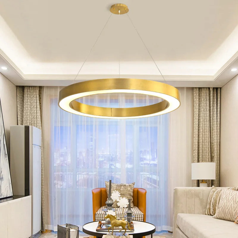 Illuminate your space with the Afralia™ Gold Copper Pendant Lights. Crafted with modern design in mind, these Nordic LED hanging lamps feature a sleek circular ring suspension that adds a touch of sophistication to any room.