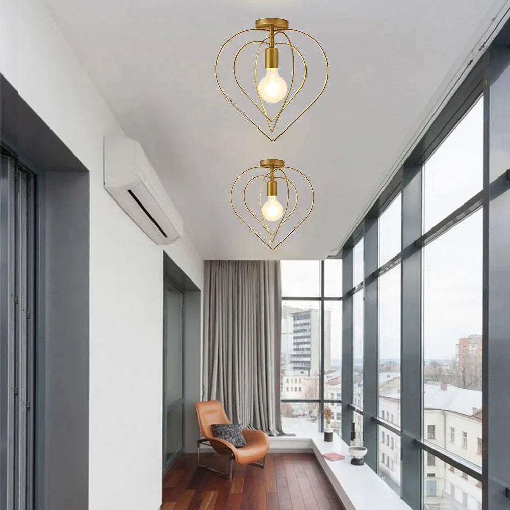 Afralia™ Gold Metal Cage Vintage Pendant Light for Restaurant and Bar