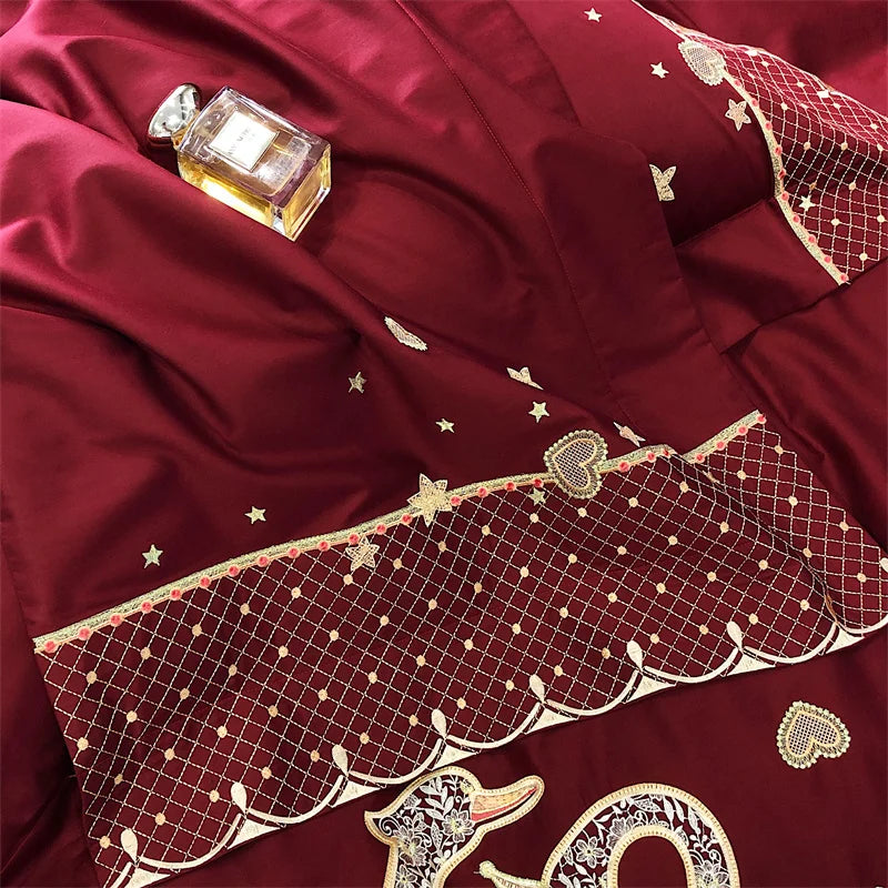 Afralia™ Gold Swan Love Wedding Bedding Set, Egyptian Cotton, 1000TC, 4 or 6Pcs
