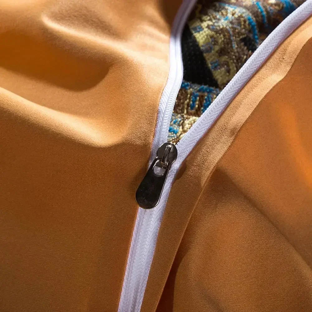 Designed with quality and durability in mind, this bedding set offers a color fastness grade of 4, ensuring that the rich golden hues stay vibrant wash after wash. Enhance your bedroom decor with the timeless elegance of the Afralia™ Golden Jacquard Baroque Bedding Set.