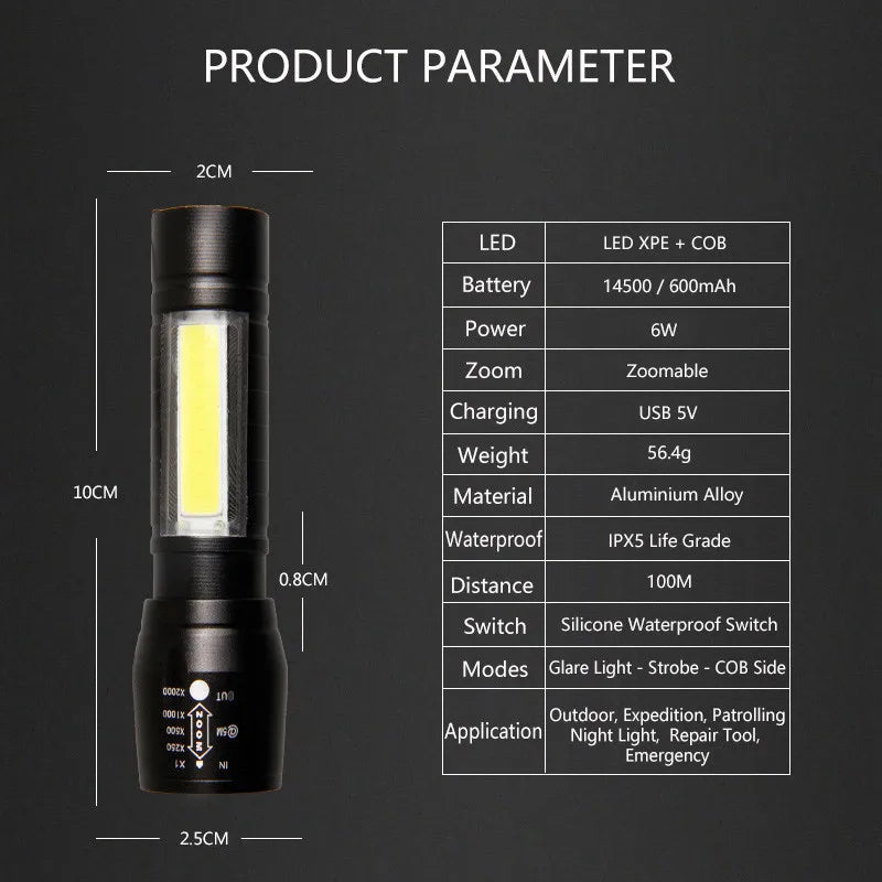 Certified for quality and safety with CCC and CE certifications, the Afralia™ High Lumen Zoomable LED Flashlight is a reliable companion for camping, hiking, emergencies, and more. Illuminate your path with confidence and style with this top-of-the-line flashlight.