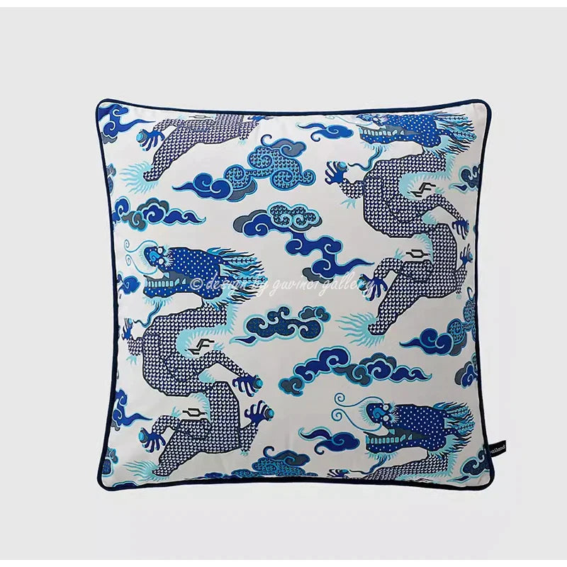 Afralia™ Indigo Blue Dragon Velvet Pillow Cover 60x60cm Eclectic Style Home Decor