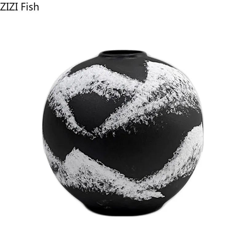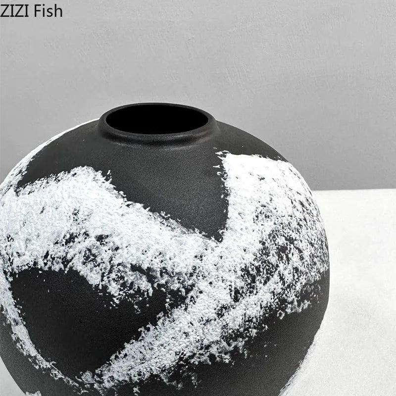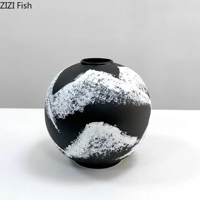 Afralia™ Ink Painting Ceramic Vase: Flower Pots Desk Decor Crafts Floral Room Aesthetic