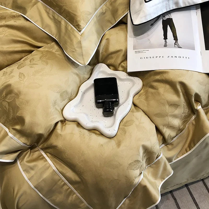 Indulge in luxury and style with our Afralia™ Jacquard Satin & Egyptian Cotton Patchwork Bedding Set - 4pcs. This exquisite bedding set is designed for those who appreciate the finer things in life.