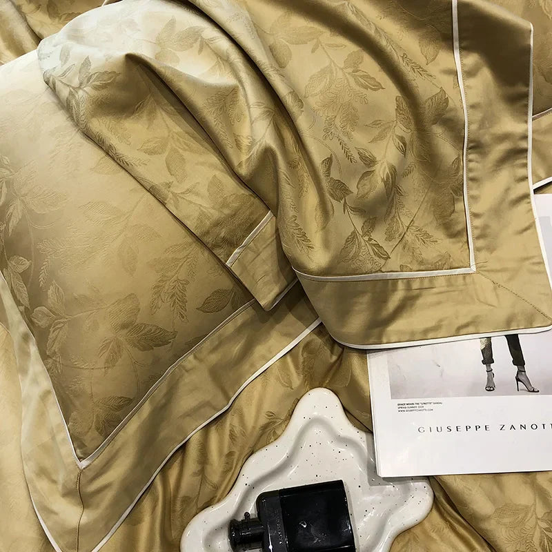 Elevate your bedroom decor with our Afralia™ Jacquard Satin & Egyptian Cotton Patchwork Bedding Set - 4pcs. Experience the luxury and comfort that you deserve.