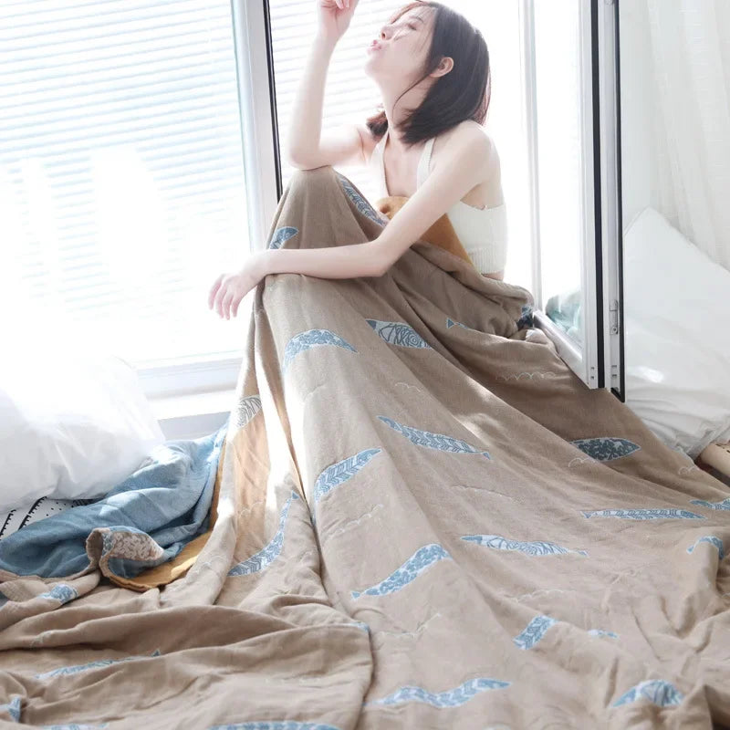 Afralia™ Kawaii Fish Cotton Gauze Blanket