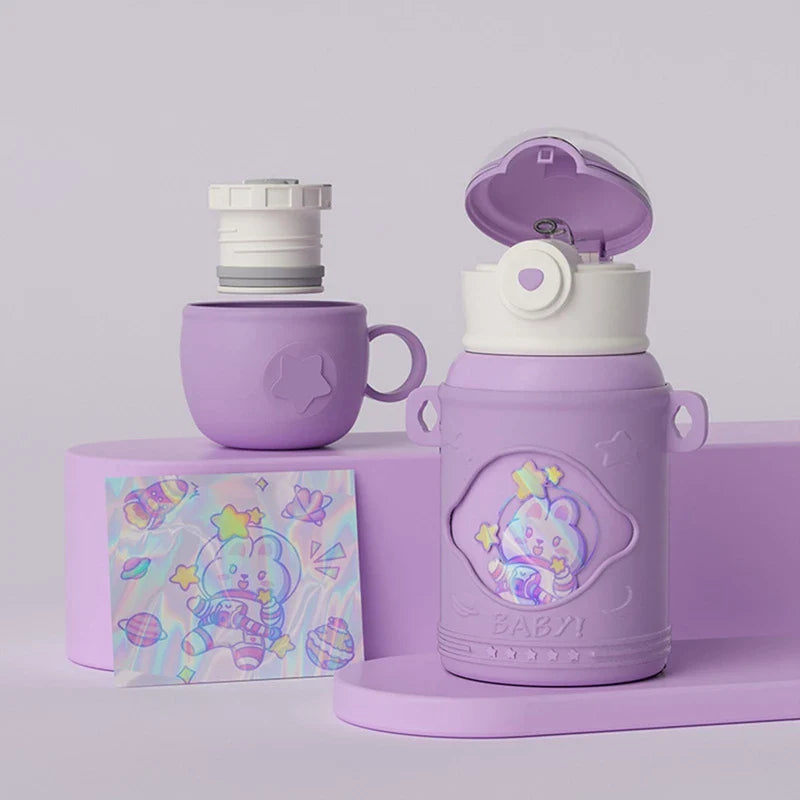 Afralia™ Kids' Cartoon Stainless Steel Thermal Water Bottle with Straw